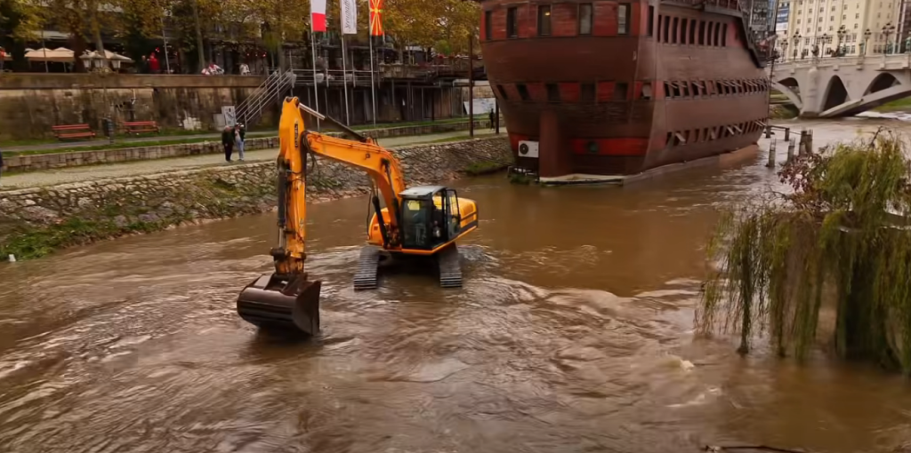 Construction machines today moved into the Vardar riverbed, cleaning it up from debris and mud. Newly elected Mayor Orce Gjorgjevski promised to clean up the city in 72 hours and all city institutions are actively engaged.