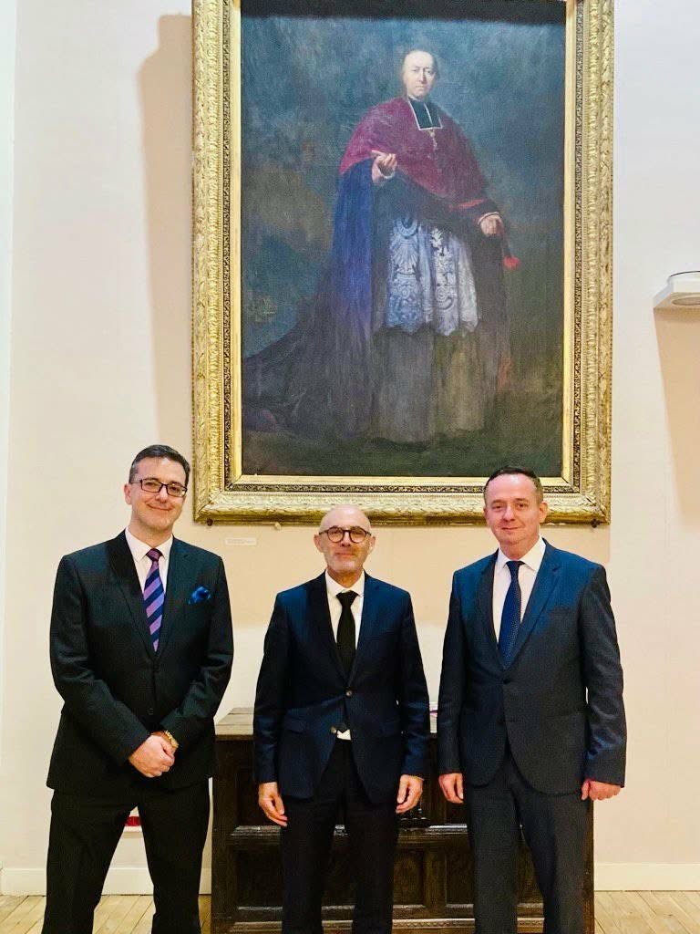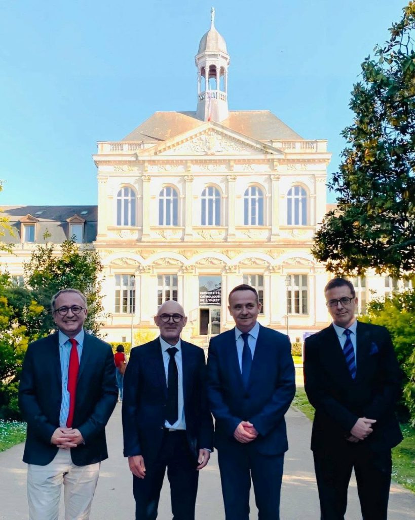 The visit was initiated by Rector prof. Laurent Peridy and the professors Brad Safarik and Olivier Landron. Doctor Nikolov spoke on the Geopolitical Dynamics and Investment Opportunities, while professor Srbinoski discussed the status of diplomats according to the Vienna conventions.